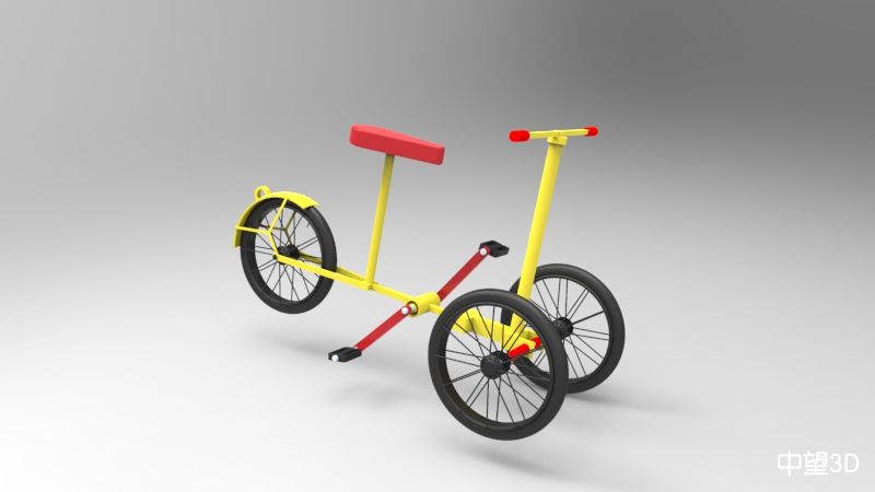 自行车是我们日常生活中的普通交通工具,作为一名用三维设计软件进行三维建模设计的在校学生,能发挥创意思考是一件有趣的事情,所以我在想能不能设计一款概念三轮车呢,在大街上骑着这样的三轮车会不会很拉风呢?如下图所示为我运用三维CAD软件xelega3D设计的概念三轮车: