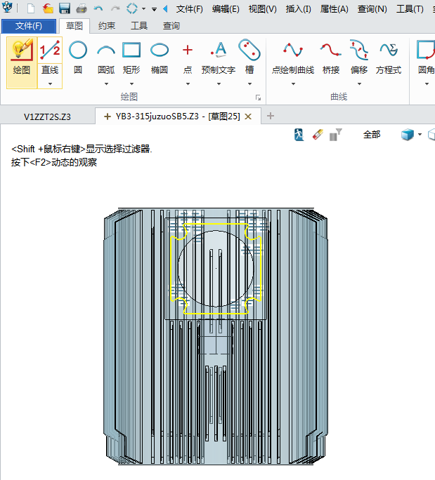 2、绘制外壳的筋条,点击草图键,绘制筋条的线条,拉伸完成,如图:
