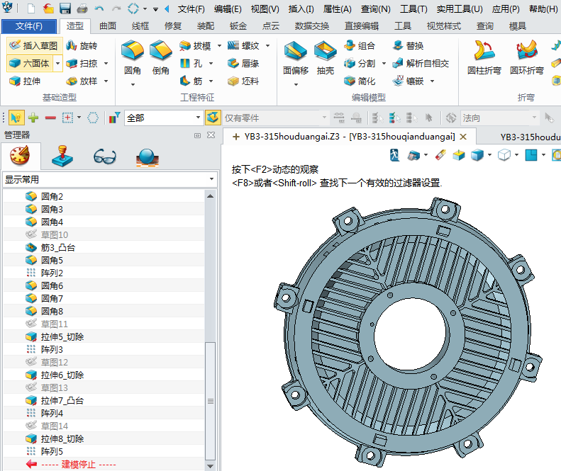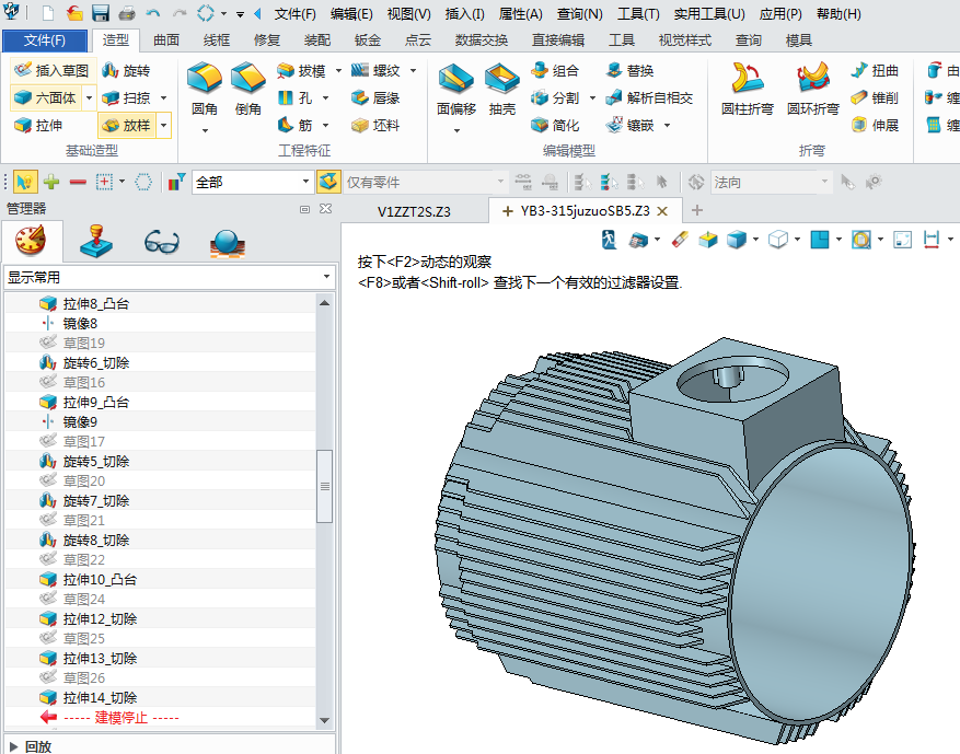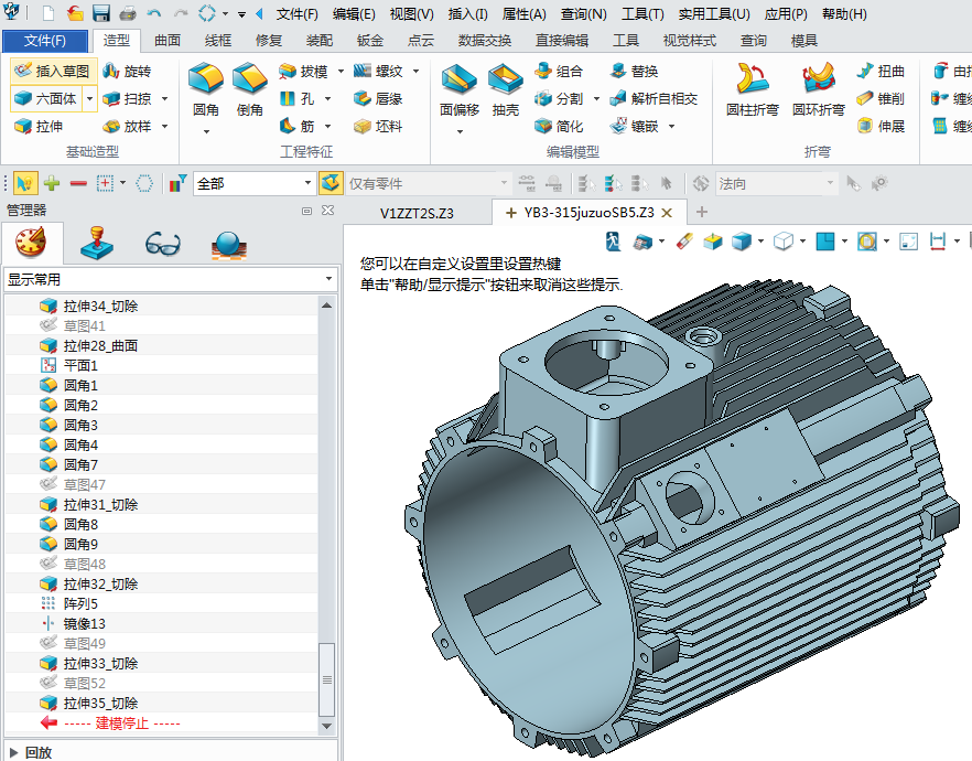 1、设计电机外壳,进入草图绘制轮廓,拉伸外形,如图: