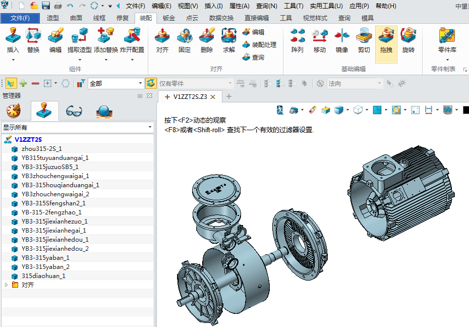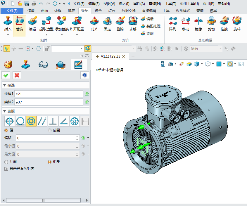 8、装配电机的零件,点击插入命令,对齐装配电机的零件,并检查干涉,如图: