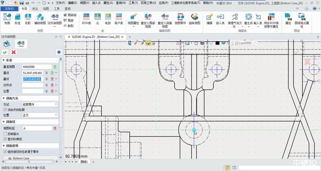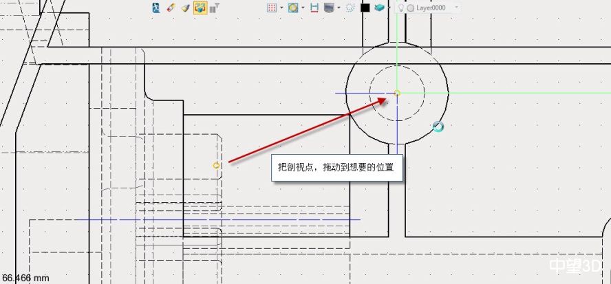 1、如果需要修改剖视点的位置,只需要激活选定点,左键选择,拖动点到你需要的位置即可。
