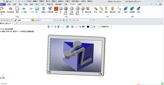 此时,笔记本底部已基本完成建模,大家可以参照图纸中给出的提示完成具体工作。另外,我们可以添加有立体感的装饰,在笔记本屏幕上贴图,这可使笔记本的外观更漂亮一点。选择视觉样式中的纹理贴图命令,xelega3D会自动跳出图片文件选择窗口,你可根据自己喜好选择图片,然后设置好图片、长度、宽度和位置等,使其占满整个屏幕。完成后的效果如下图所示为: