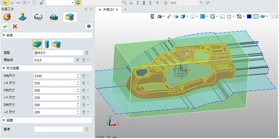 8.创建“工件”,即定义模仁的尺寸,如图参数设置: