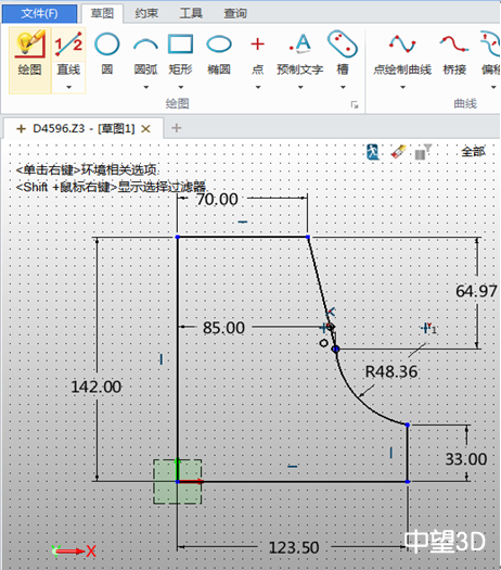 第一步:插入草图,可以把画好luck18网址图形直接复制到xelega3D的草图,如下图,也可以直接在xelega3D的草图环境中直接绘制。